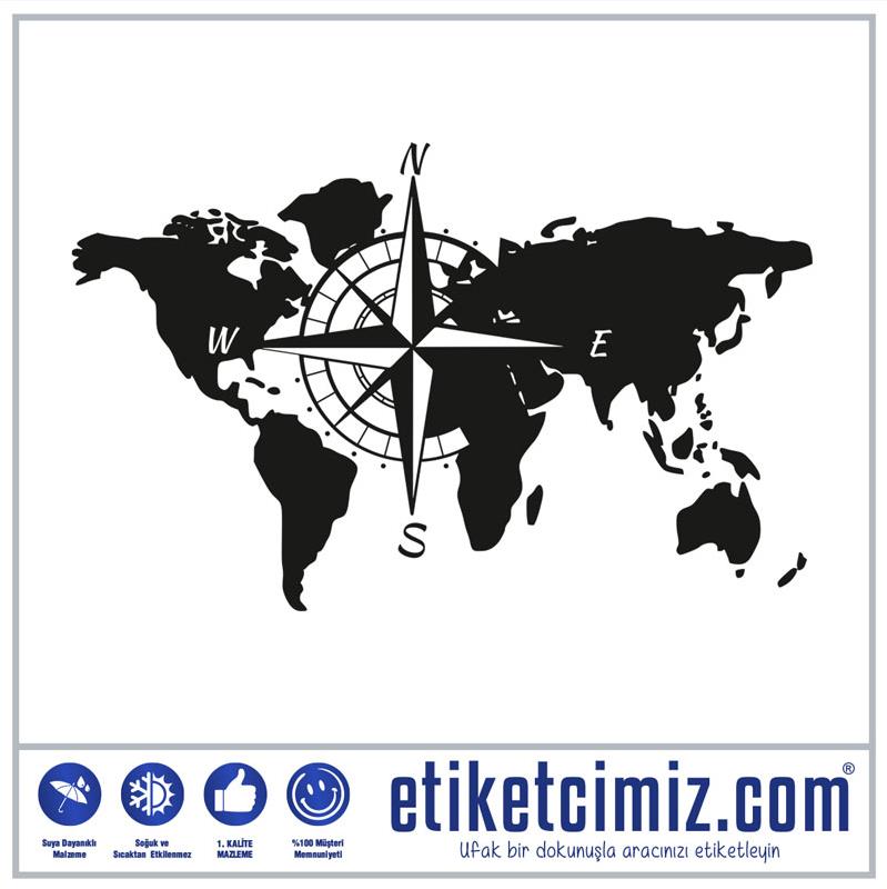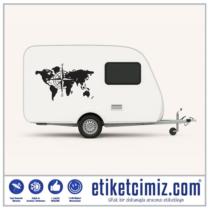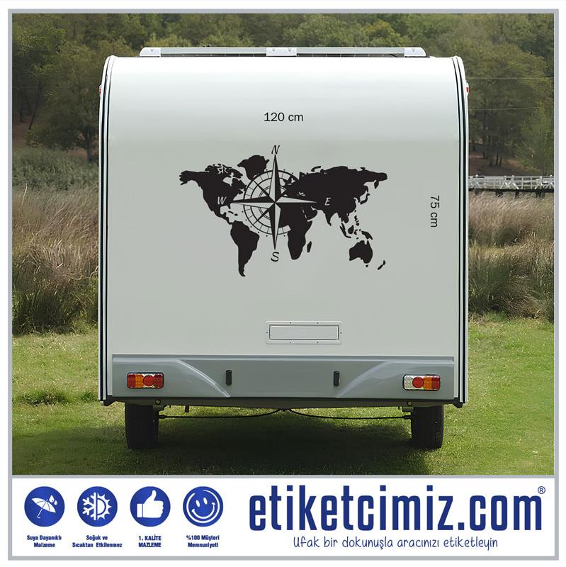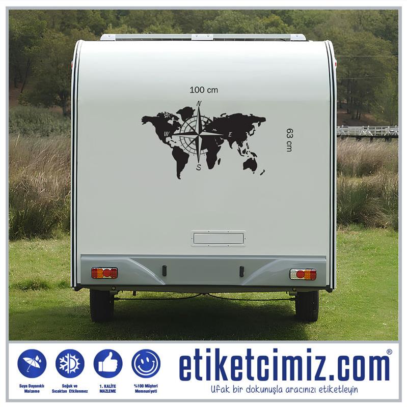 Dünya Haritası ve Pusula Karavan Sticker